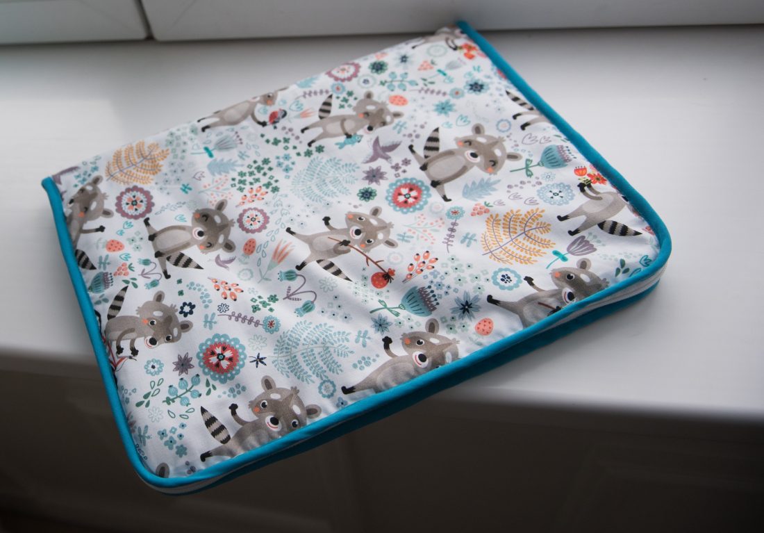 Belül pul, kívül mintás pamutvászon, belül puha vatelin, hogy a pelenkacsere minden helyzetben kényelmes legyen.