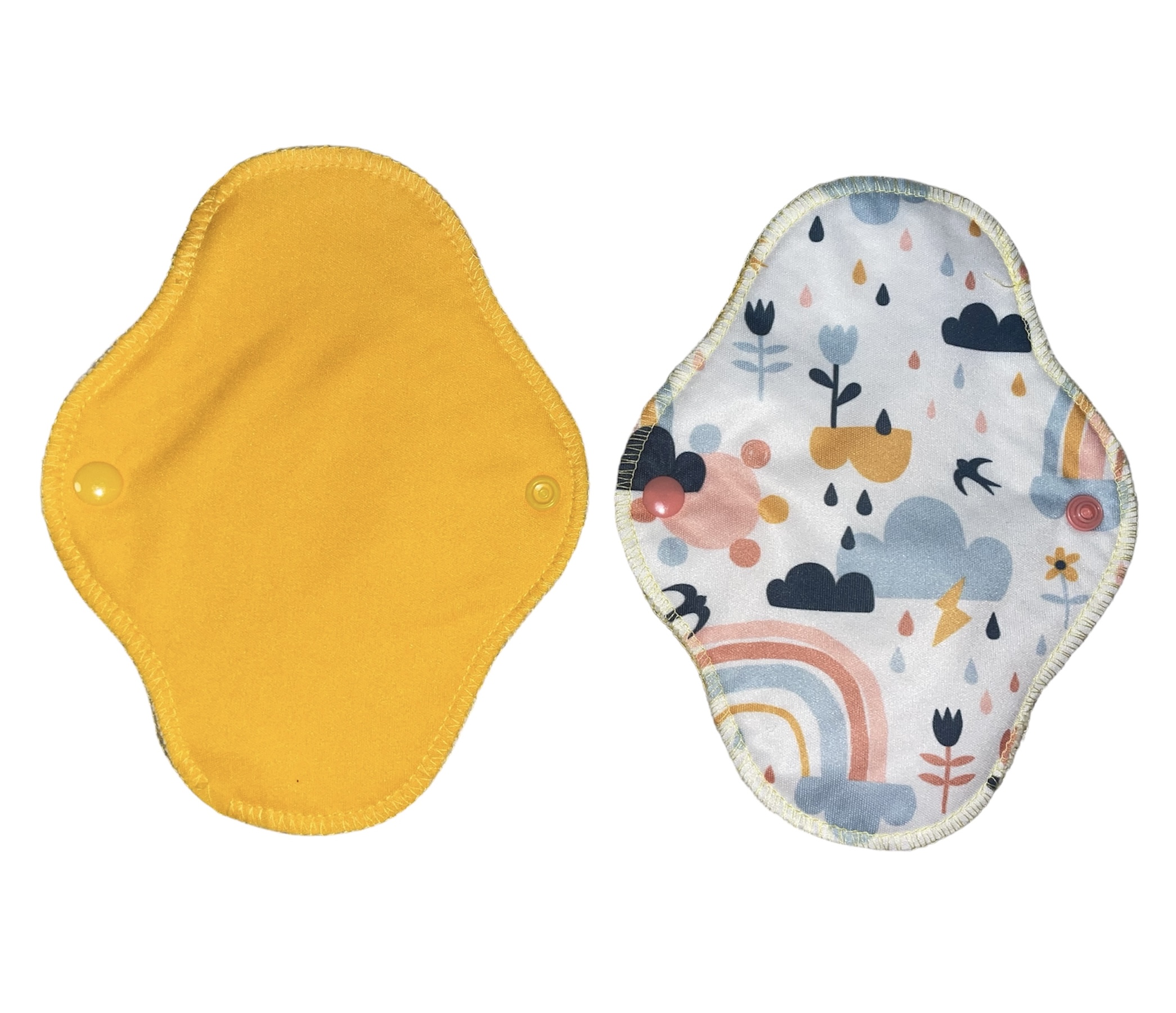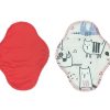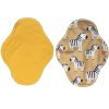 Vékony, de nagy nedvszívó-képességű menstruációs betétek: a test felől egyszínű szárazontartó, hogy ne érezd a nedvességet, és minden foltot könnyedén ki tudj mosni; középen egy réteg 100% biopamut zorb; alul nedvességzáró (mintás vagy egyszínű) pul réteg. 19,5 cm hosszú, és 5,5 cm széles összepatentolva.