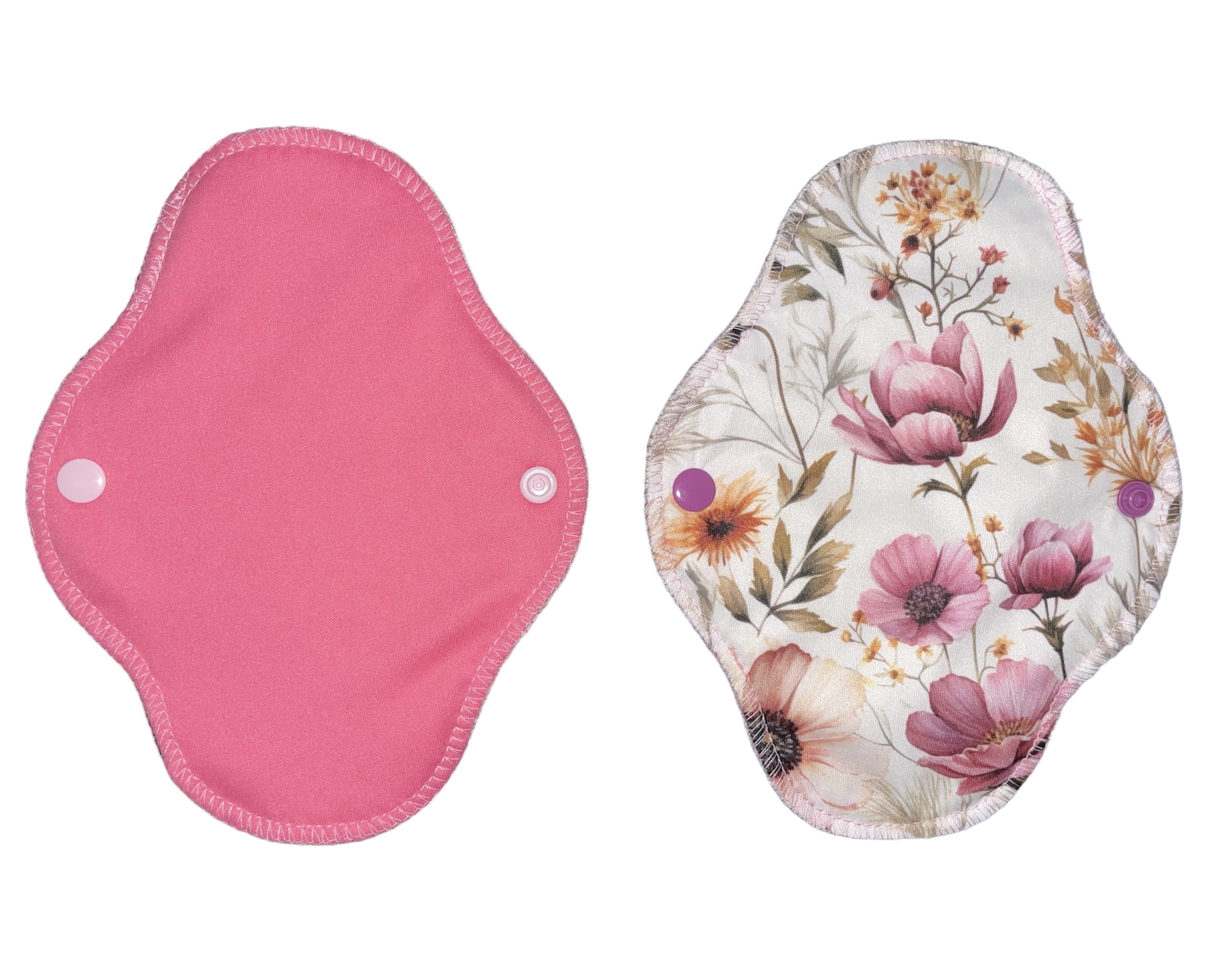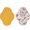 Vékony, de nagy nedvszívó-képességű menstruációs betétek: a test felől egyszínű szárazontartó, hogy ne érezd a nedvességet, és minden foltot könnyedén ki tudj mosni; középen egy réteg 100% biopamut zorb; alul nedvességzáró (mintás vagy egyszínű) pul réteg. 19,5 cm hosszú, és 5,5 cm széles összepatentolva.